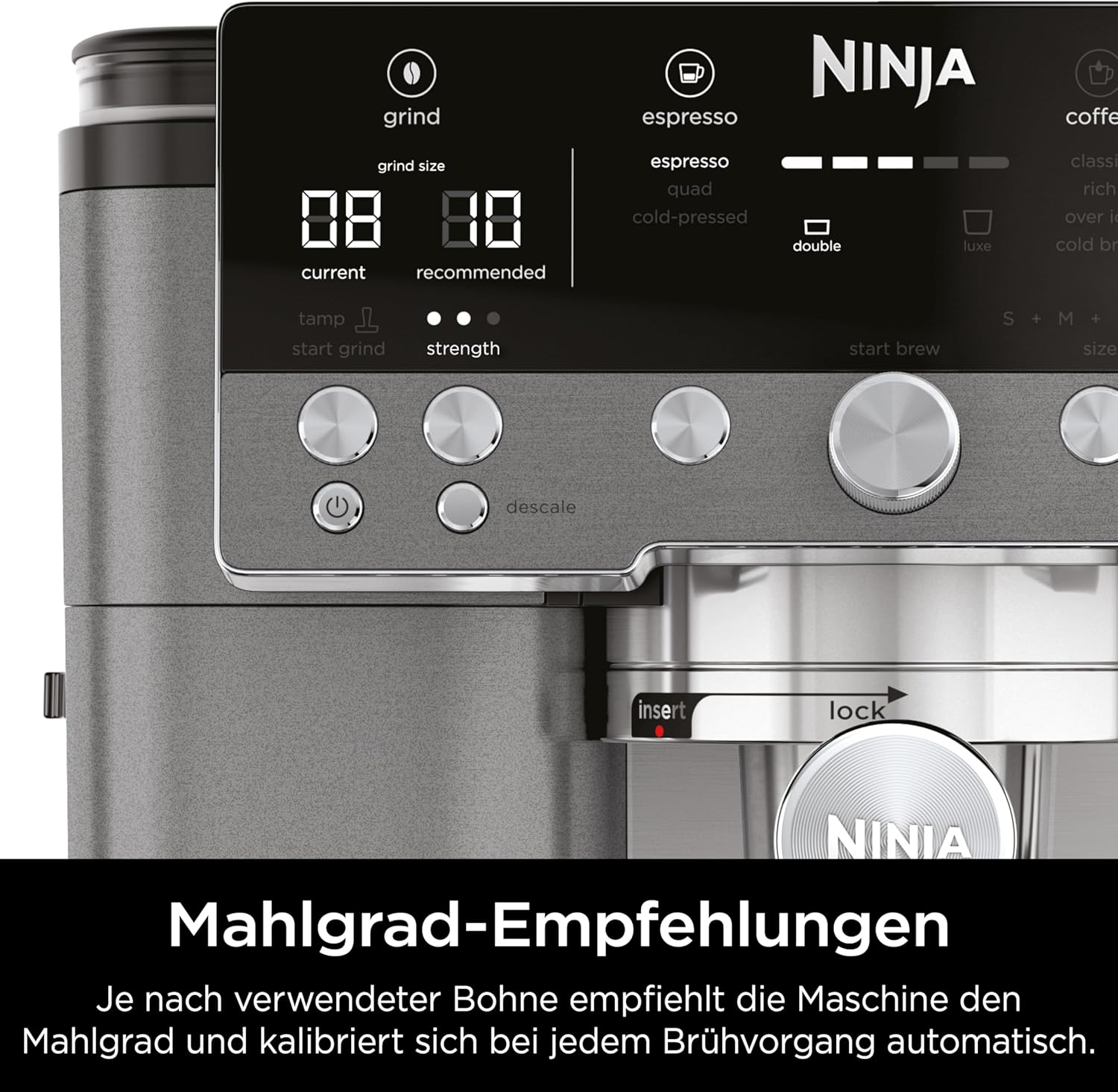 Ninja Luxe Premier ES601EUGM 3-in-1 Kaffeemaschine, Espresso, Cold Brew & Filterkaffee, 4 Schaumeinstellungen, Grau-Metall