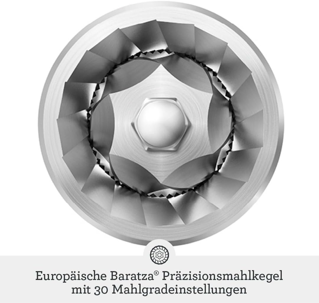 • Präzises Mahlen: Genießen Sie 30 Mahlgradeinstellungen mit dem integrierten konischen Präzisionsmahlwerk aus gehärtetem Stahl. Mit einem einzigen Knopfdruck erhalten Sie die richtige Kaffeemenge für maximalen Geschmack
